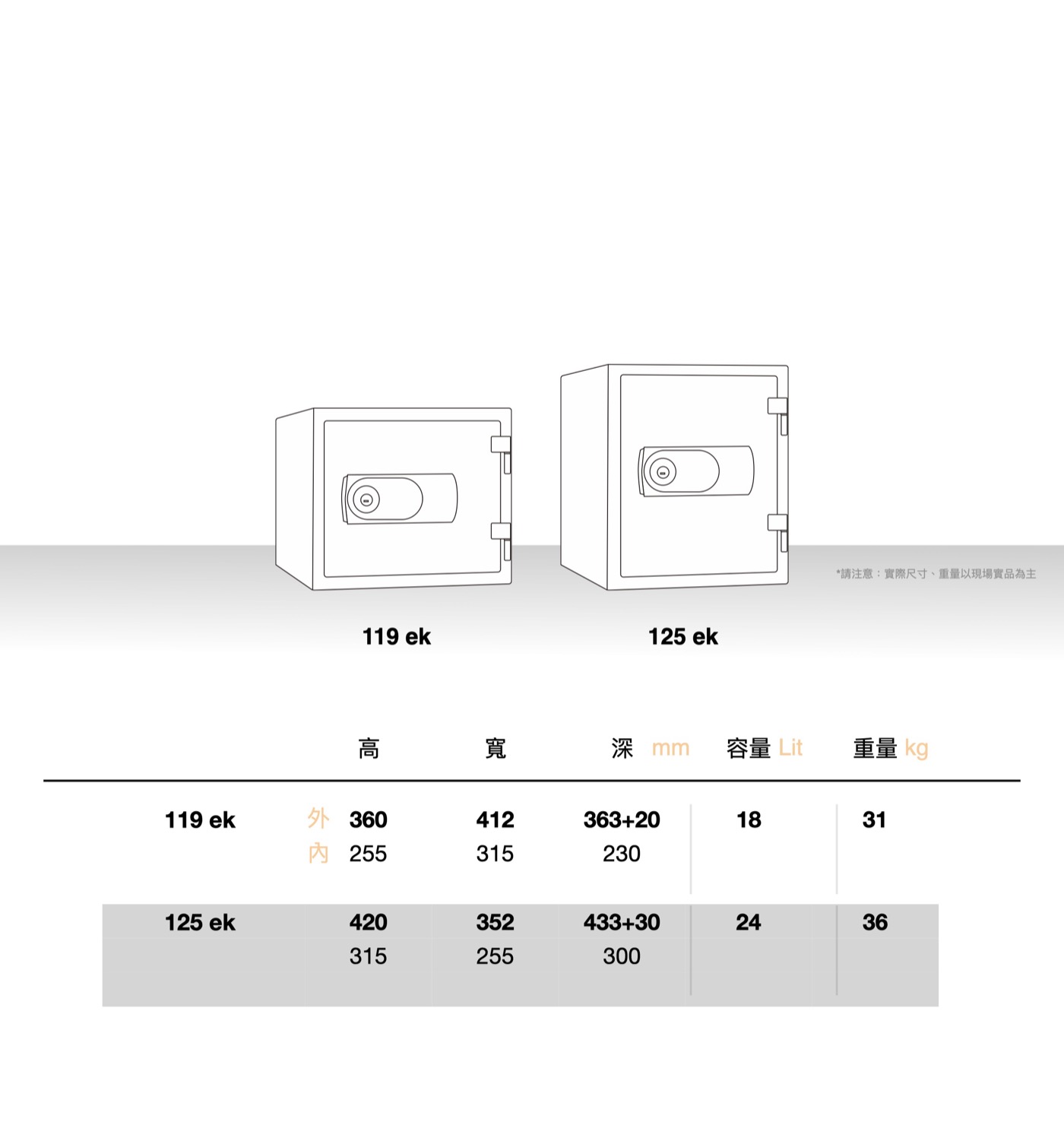 EK系列 防火保險箱 119 EK 125 EK