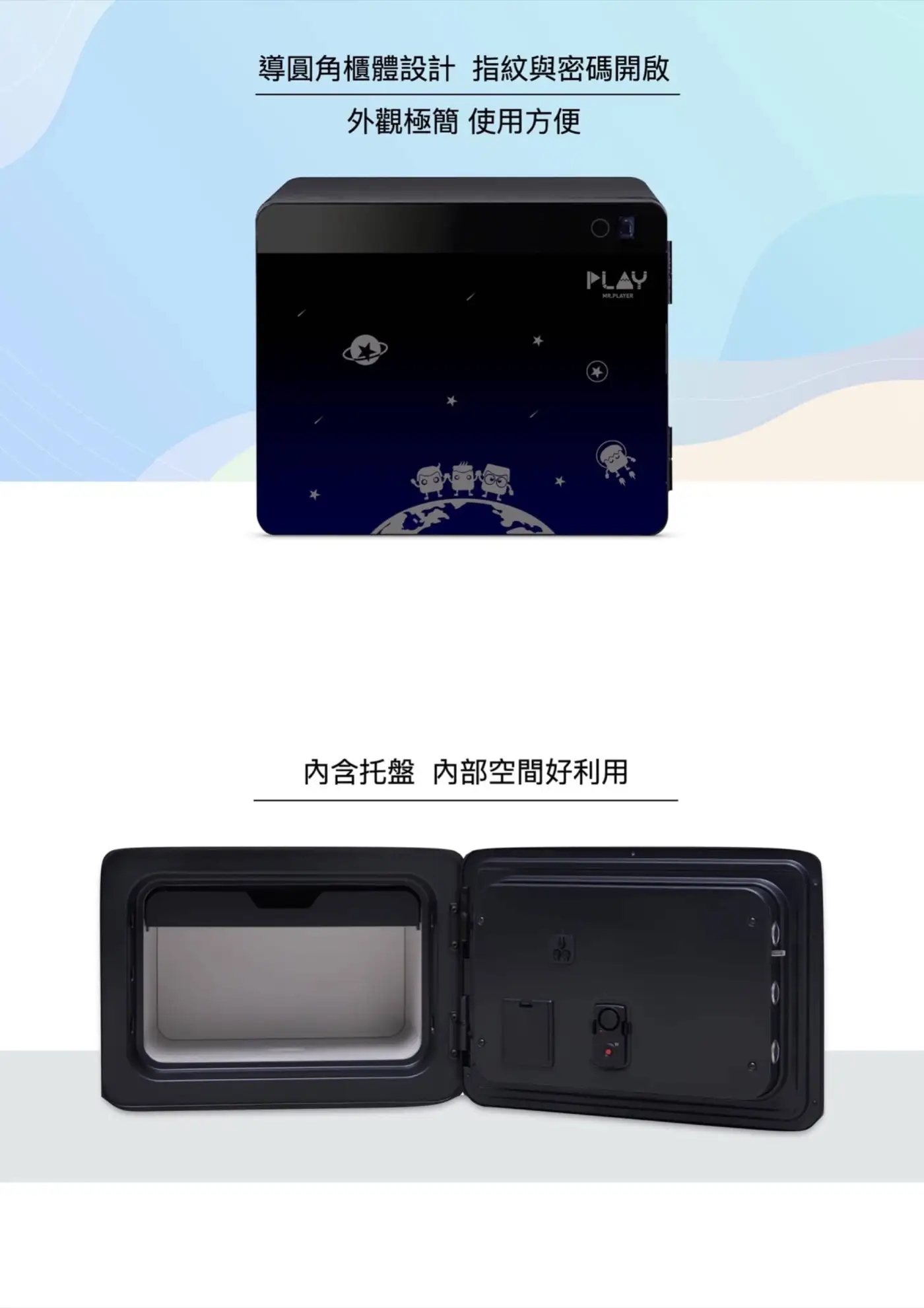 藝玩很大 首播限量聯名保險箱 獨家設計面板 USB外接電源 導圓角櫃體設計 指紋與密碼開啟 外觀極簡 使用方便 內含托盤 內部空間好利用 可移動式層板 蜂鳴器 電池盒 外出時將貴重物品存放 安心 放心 有保障 智慧型指紋電子密碼鎖 輕鬆融入家中環境 創造個人生活風格 內含托盤 隔板 聰明儲存 打造居家安全生活 跟玩娃們一起守護珍寶 關鍵時刻 玩娃保護您的財產安全 輕鬆駕馭任何空間 限量聯名面板 童趣有品味 Meta-020 外高342 外寬461 外深410 容量21 重量37 內高225 外寬355 外深258 Meta-040 外高535 外寬418 外深470 容量41 重量53 內高418 外寬312 外深316